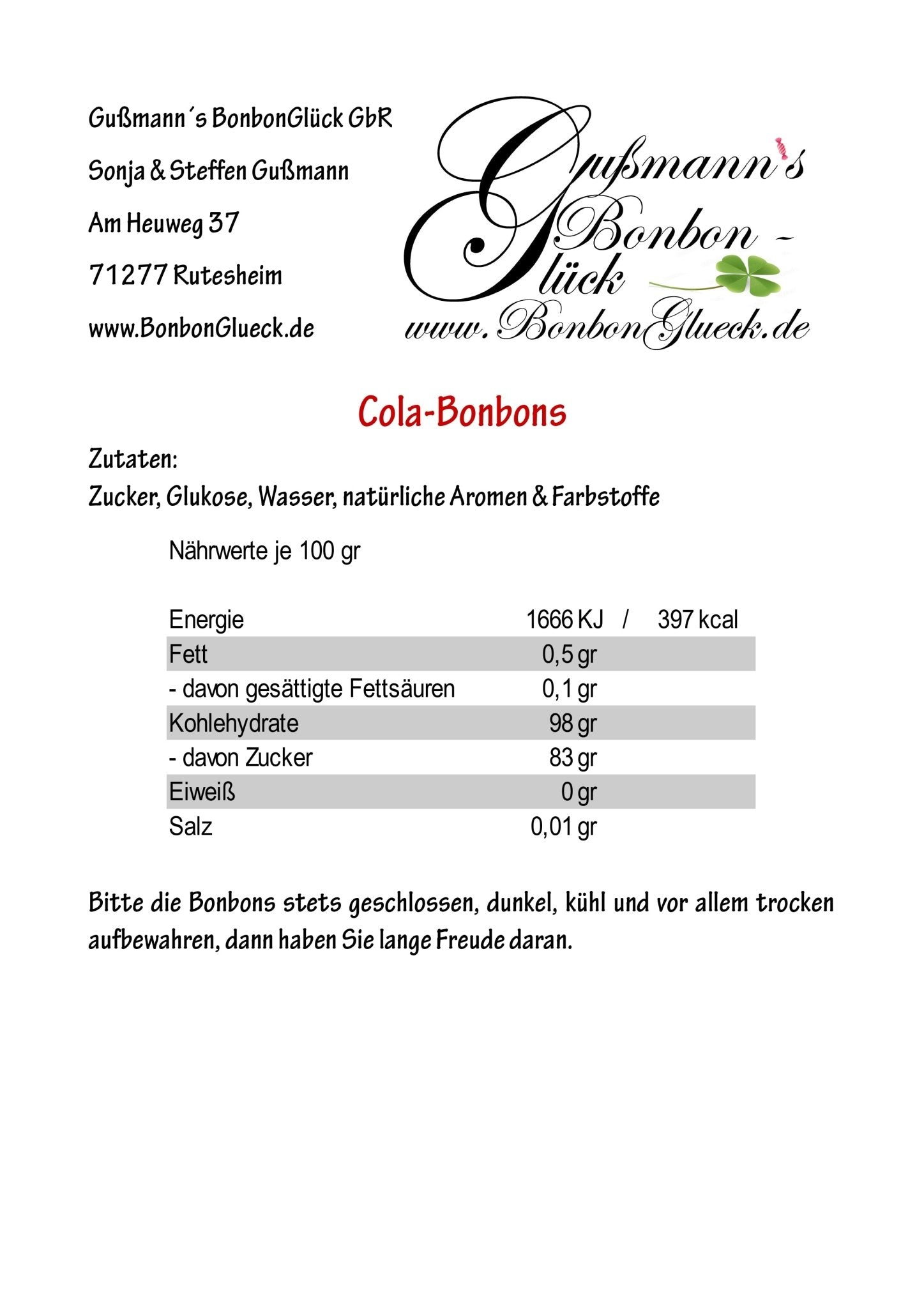 Cola-Bonbons im Glas mit 125 gr leckerem Inhalt